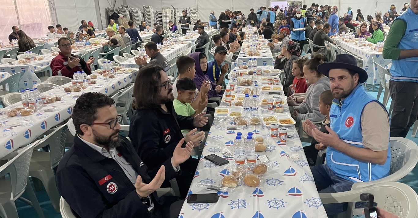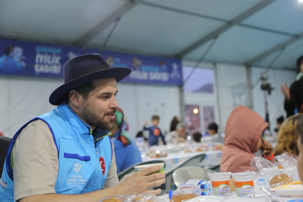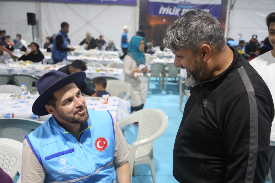 في المخيم المتواجد في محلة هاراباراسي قام معاون المدير العام لوقف الديانة التركي عبدالرحمن جتين بالتحدث مع العائلات المتواجدة هناك قبل الإفطار.