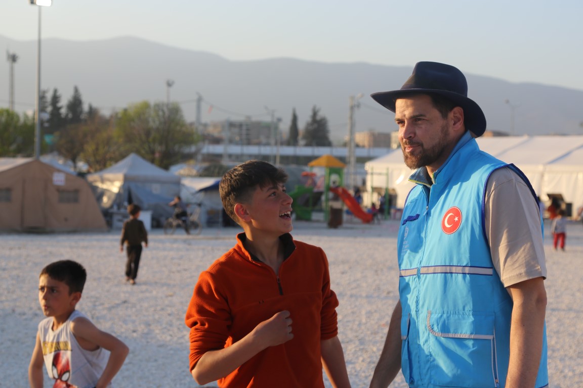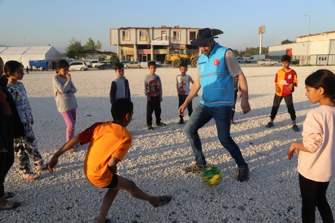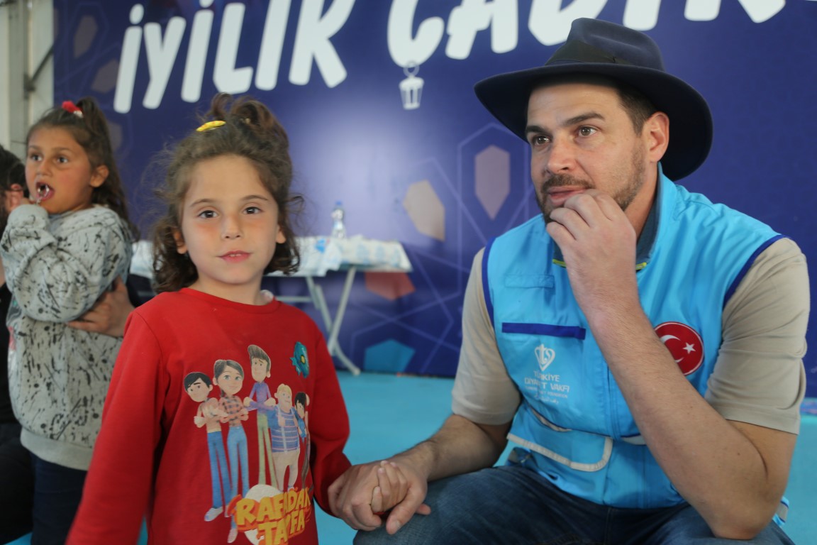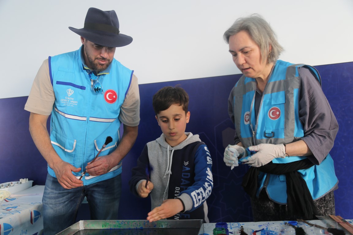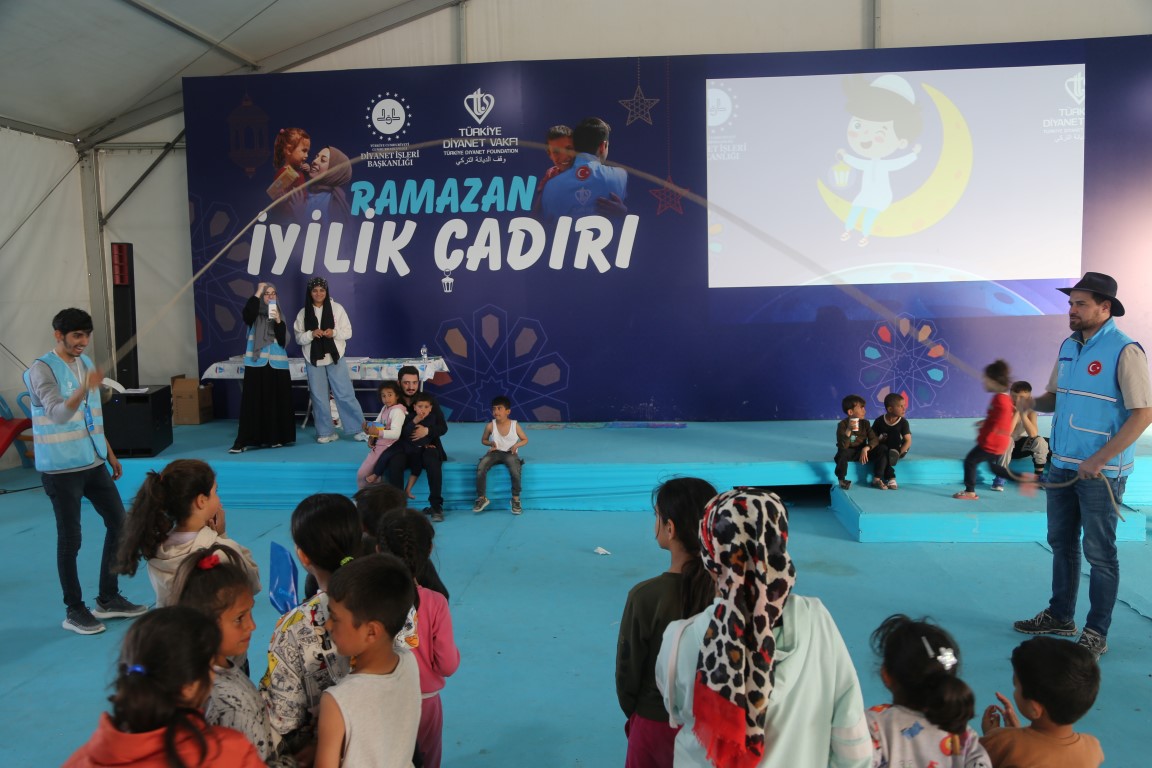 يتم القيام بمختلف الأنشطة ووسائل الترفيه للأطفال المتضررين من الزلزال في خيمة البر التي أعدت من قبل رئاسة الشؤون الدينية ووقف الديانة التركي لتقديم طعام الإفطار والسحور للمتضررين من الزلزال الذي وقع في 6 شباط ومركزه ولاية قهرمان مرعش وأثر على ولايات أخرى.