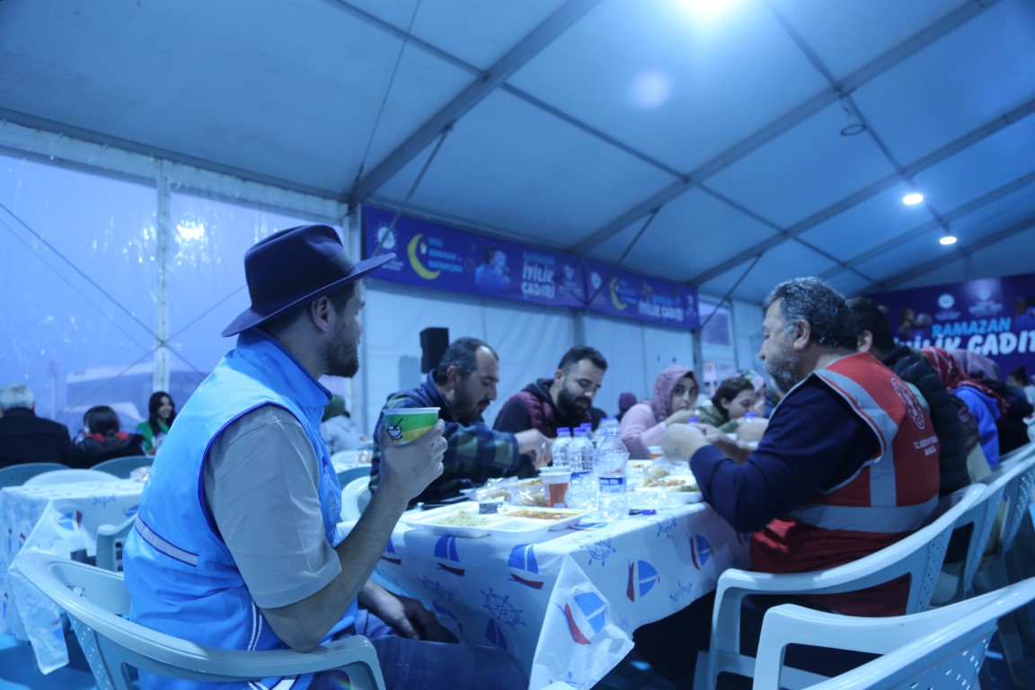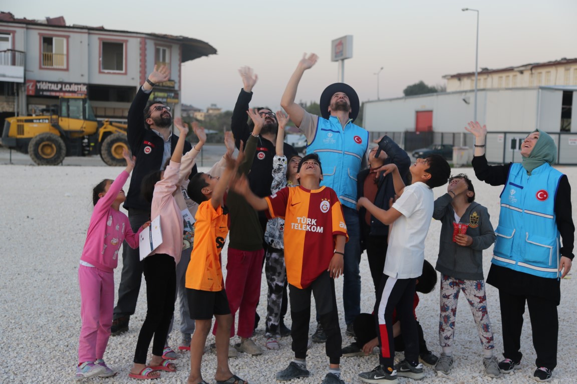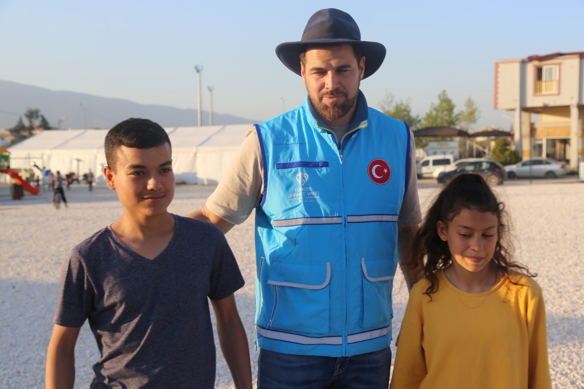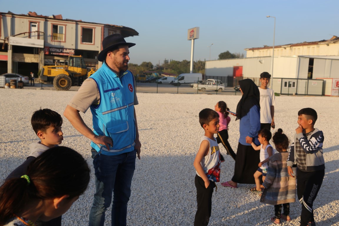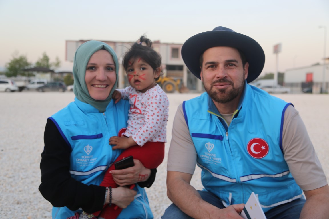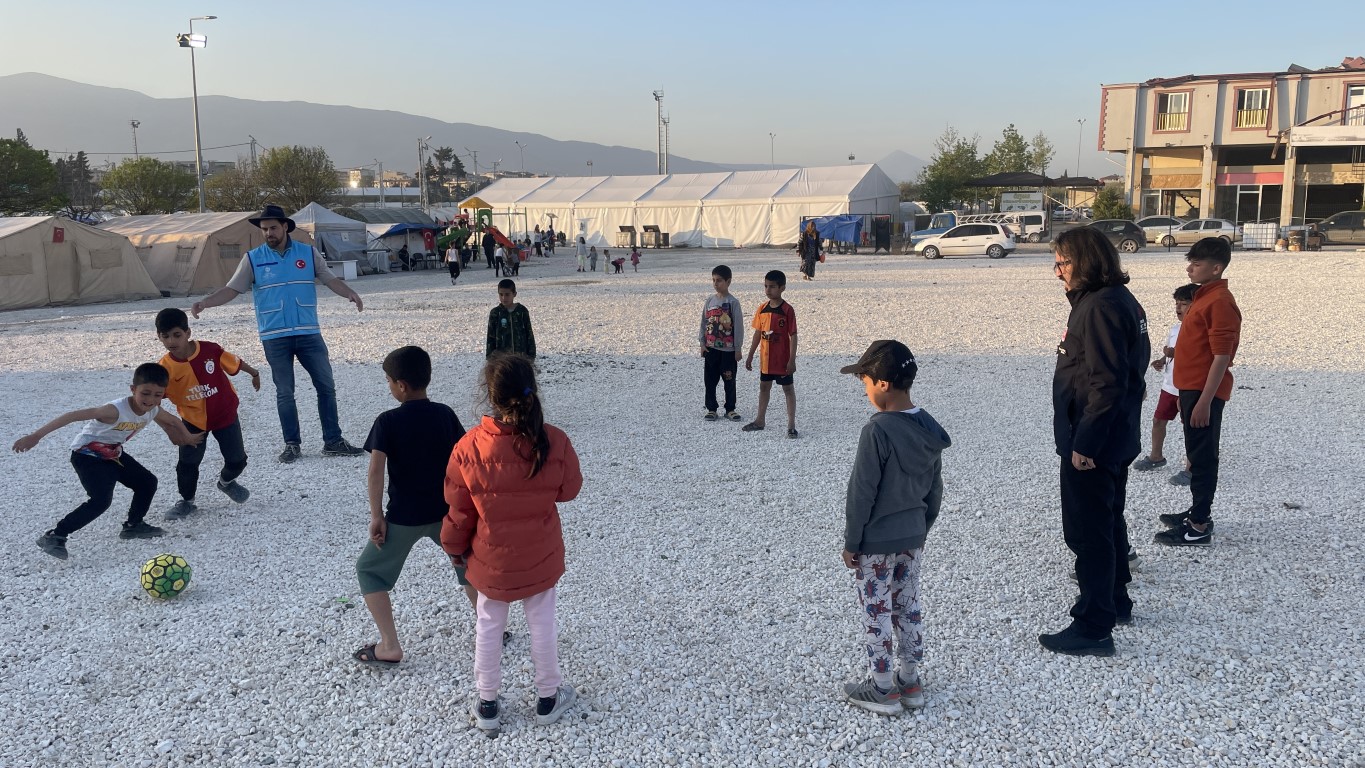 يتم القيام بمختلف الأنشطة ووسائل الترفيه للأطفال المتضررين من الزلزال في خيمة البر التي أعدت من قبل رئاسة الشؤون الدينية ووقف الديانة التركي لتقديم طعام الإفطار والسحور للمتضررين من الزلزال الذي وقع في 6 شباط ومركزه ولاية قهرمان مرعش وأثر على ولايات أخرى.