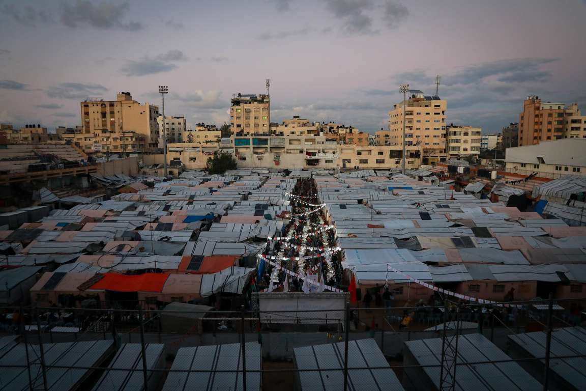 وأقيم برنامج الإفطار الجماعي في منطقة كانت تستخدم سابقا كملعب، لكنها تحولت إلى مخيم خيام للمهجرين نتيجة الهجمات الإسرائيلية.