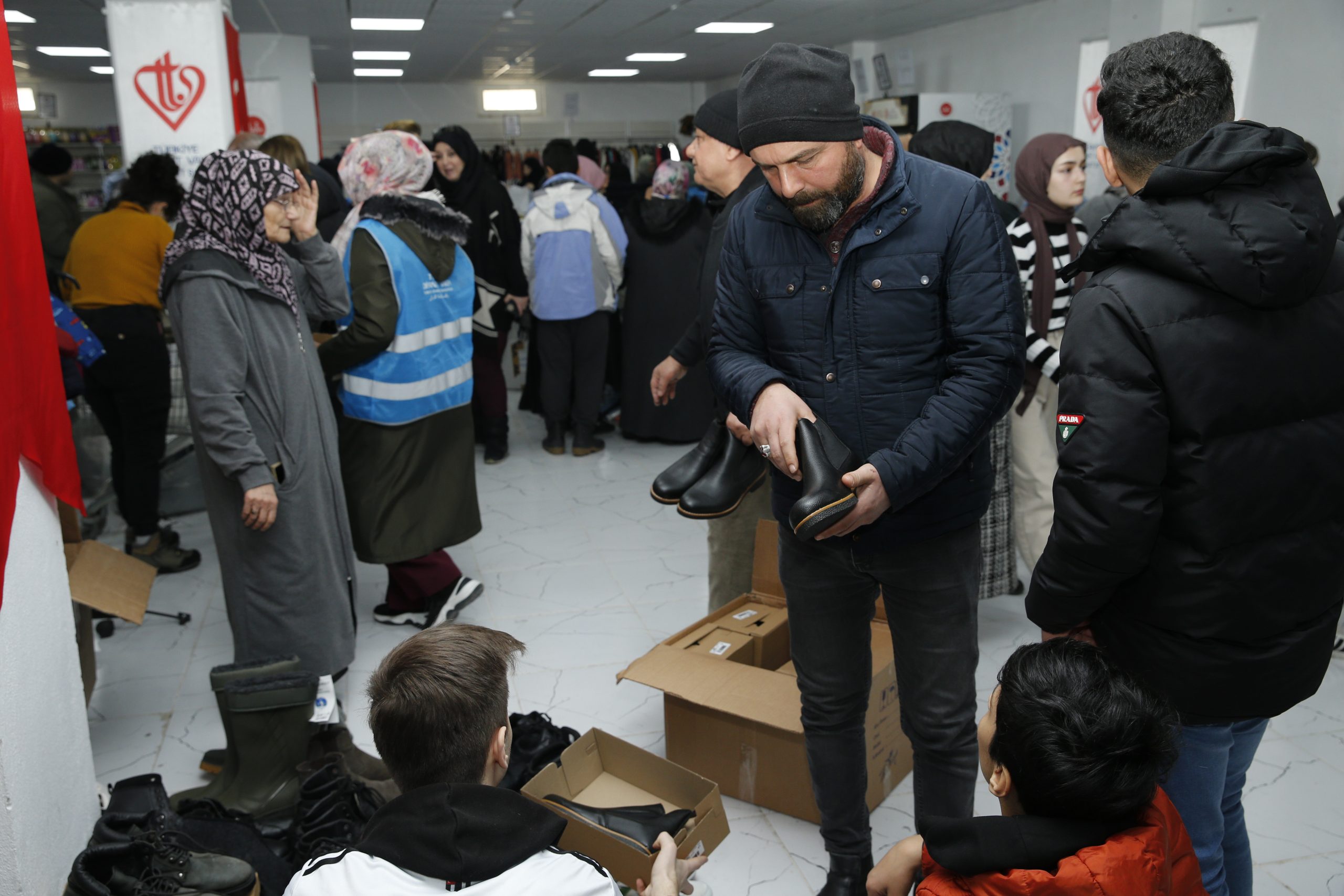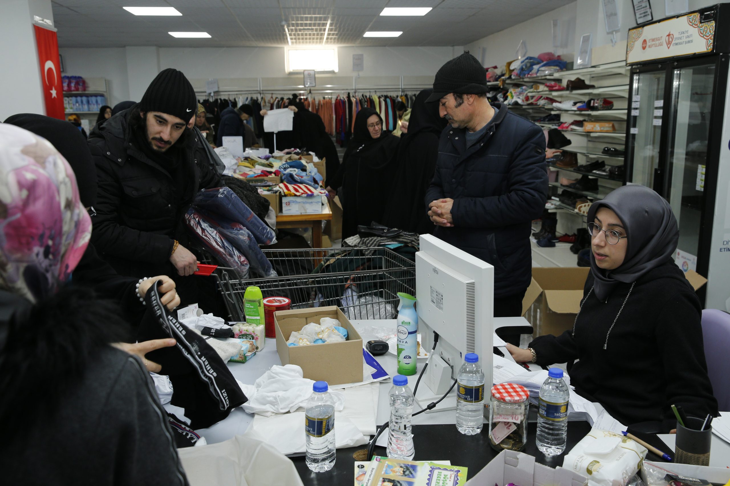 Ankara’da Etimesgut Müftülüğü ve Türkiye Diyanet Vakfı Etimesgut Şubesi iş birliğiyle açılan “Hayır Çarşısı”nda depremzedelerin gıda ve giyim ihtiyacı karşılanıyor.
