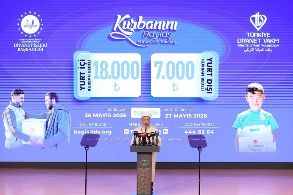 Diyanet İşleri Başkanı ve Türkiye Diyanet Vakfı (TDV) Mütevelli Heyeti Başkanı Prof. Dr. Safi Arpaguş, Türkiye Diyanet Vakfı’nın 2026 yılı vekaletle kurban kesim bedelini yurt içi 18 bin TL, yurt dışı 7 bin TL olarak belirlediklerini açıkladı.