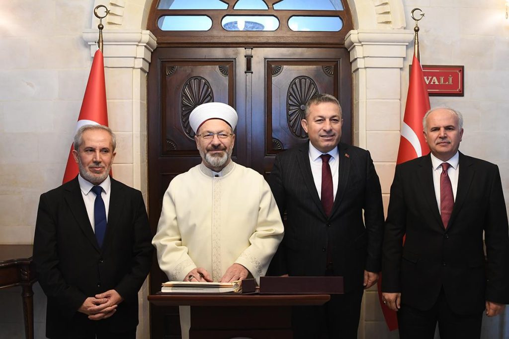 Valiliğe gelişinde Vali Tahir Şahin tarafından karşılanan Başkan Erbaş, valilik şeref defterini imzaladı.