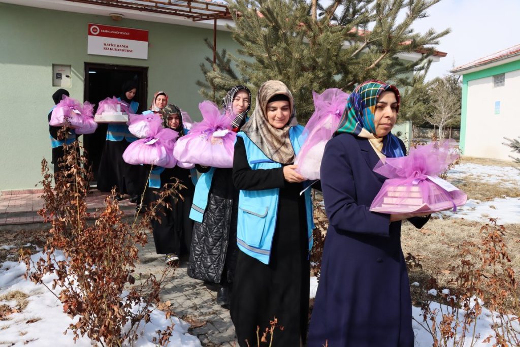 Hayırseverlerin katkılarıyla hazırlanan hediyeler ile kurslarda biriken setler görevlilere teslim ediliyor.