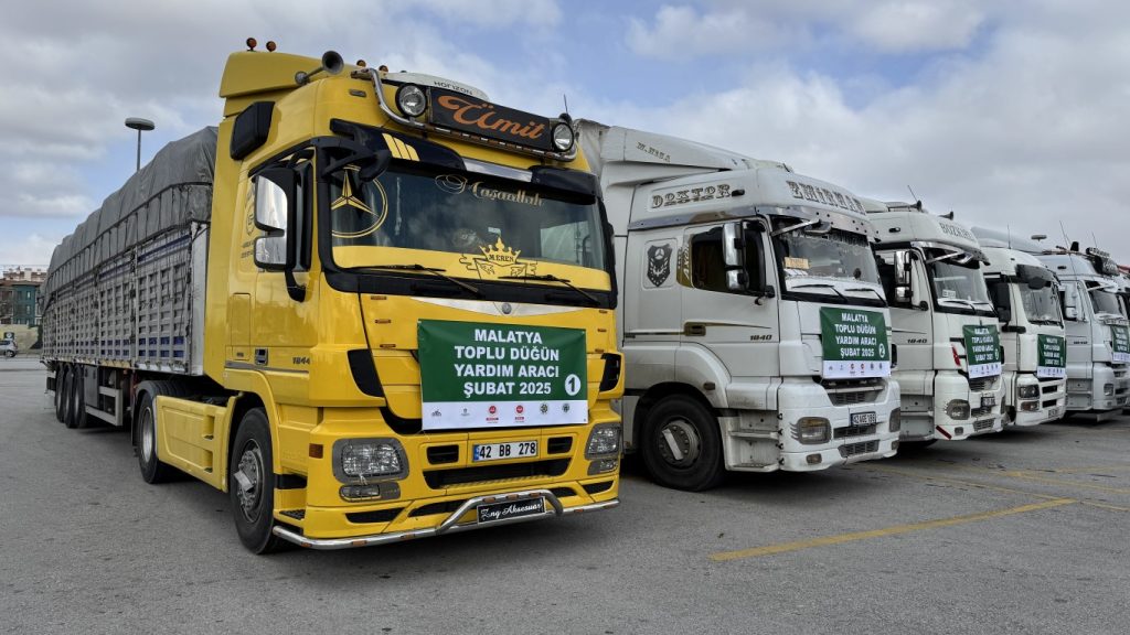 Tırlarda 19 milyon liranın üzerinde 130 kalemden oluşan 21 bin parça ayni yardımın yer aldığını aktaran Şafak, malzemelerin Malatya ve 13 ilçesinde yaşayan ihtiyaç sahibi depremzede 100 nişanlı çifte gönderileceğini vurguladı.