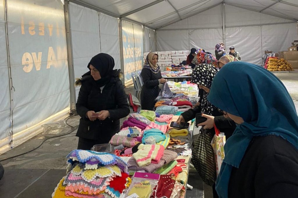 Vakfın il/ilçe kadın kollarının desteğiyle açılan hayır çarşılarından elde edilecek gelir, deprem bölgesinde zarar gören ibadethanelerin ve eğitim kurumlarının yapımında kullanılacak.