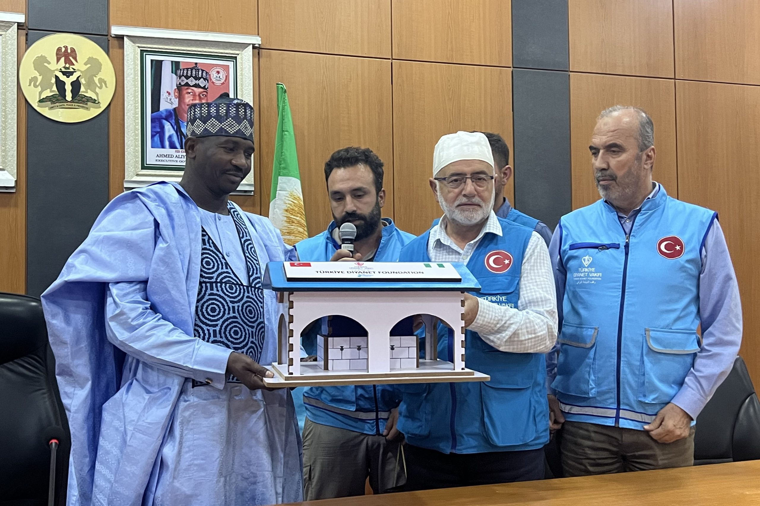 TDV’nin inşa ettiği su kuyularının açılışı için Nijerya’da bulunan Turan, Sokoto Valiliğinde Aliyu ile bir araya geldi.