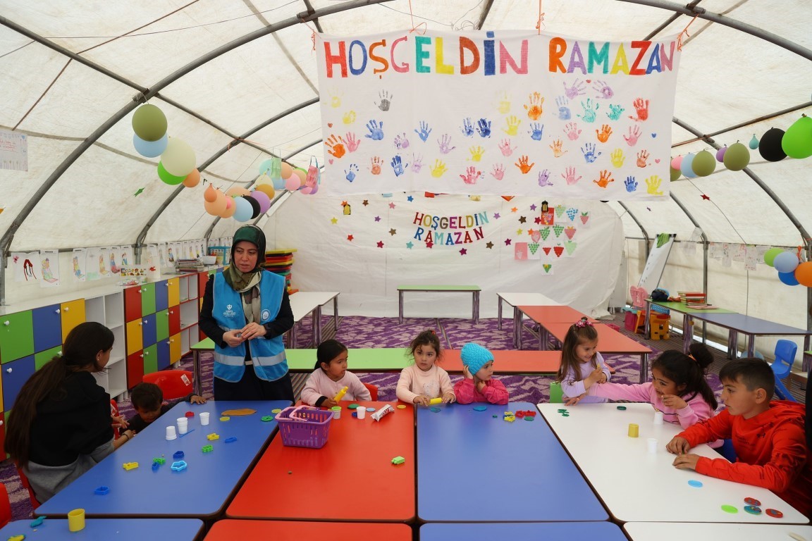 Din görevlileri, depremzede çocuklar için eğitimlerin yanı sıra çeşitli etkinlikler düzenliyor.