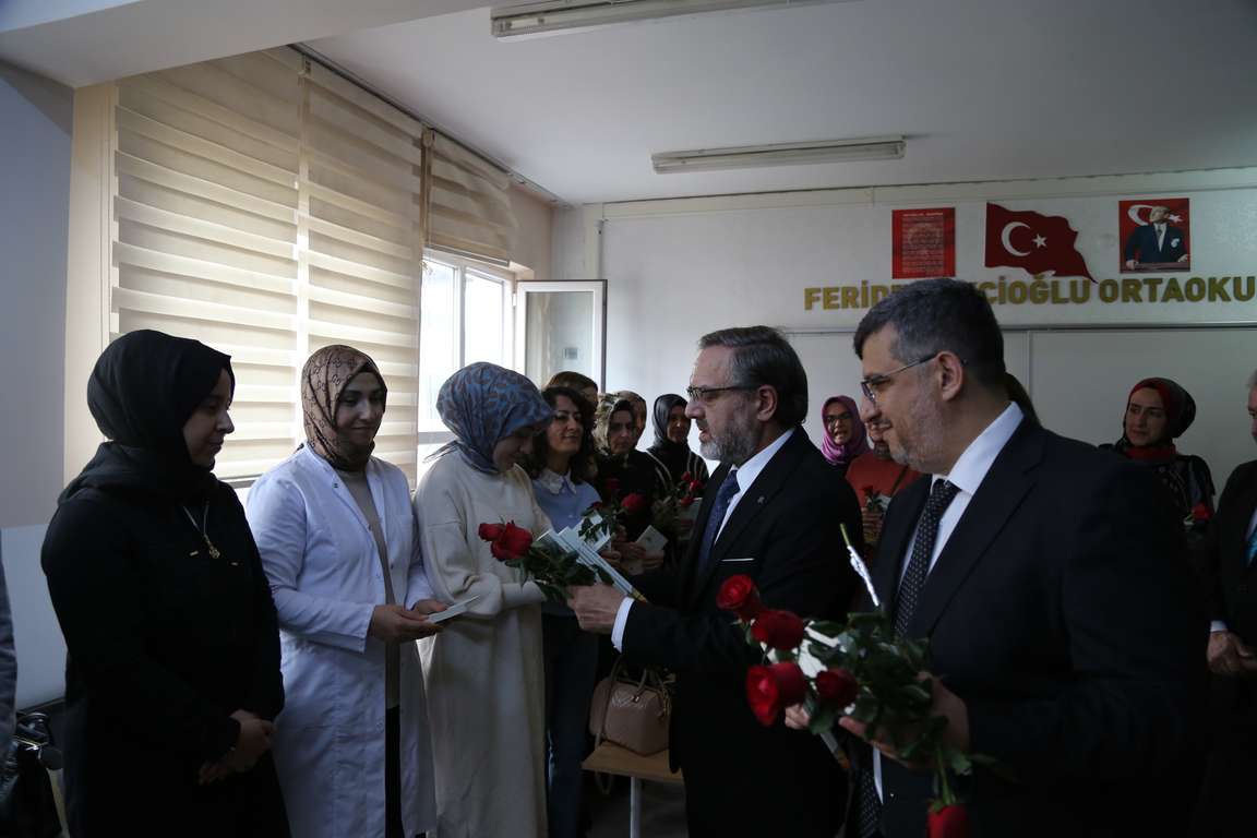 TDV Genel Müdür Yardımcısı Kayacan, “Bugün ziyaret ettiğimiz Feride Bekçioğlu Ortaokulu, ‘Dersimi Seçiyorum Kur’an’ımı Alıyorum’ projemiz kapsamında Ankara genelinde en fazla başvurunun yapıldığı yer oldu. Öğretmen Günü vesilesiyle hem öğretmenlerimizi tebrik etmek hem de projemize başvuru yapan 123 öğrenci kardeşlerimize hediyelerini takdim etmek için bu programı icra ediyoruz” diye konuştu.