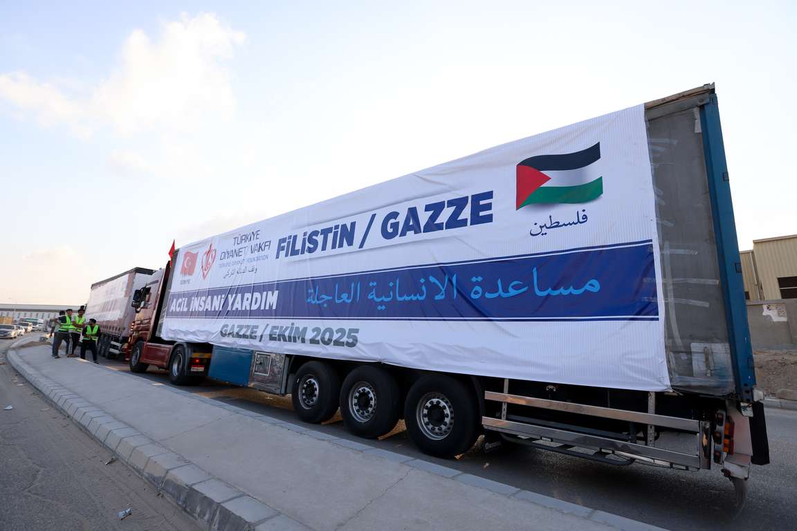 Türkiye Diyanet Vakfı (TDV), Mısır üzerinden insani yardım yüklü 20 tırı Gazze Şeridi’ne gönderdi.