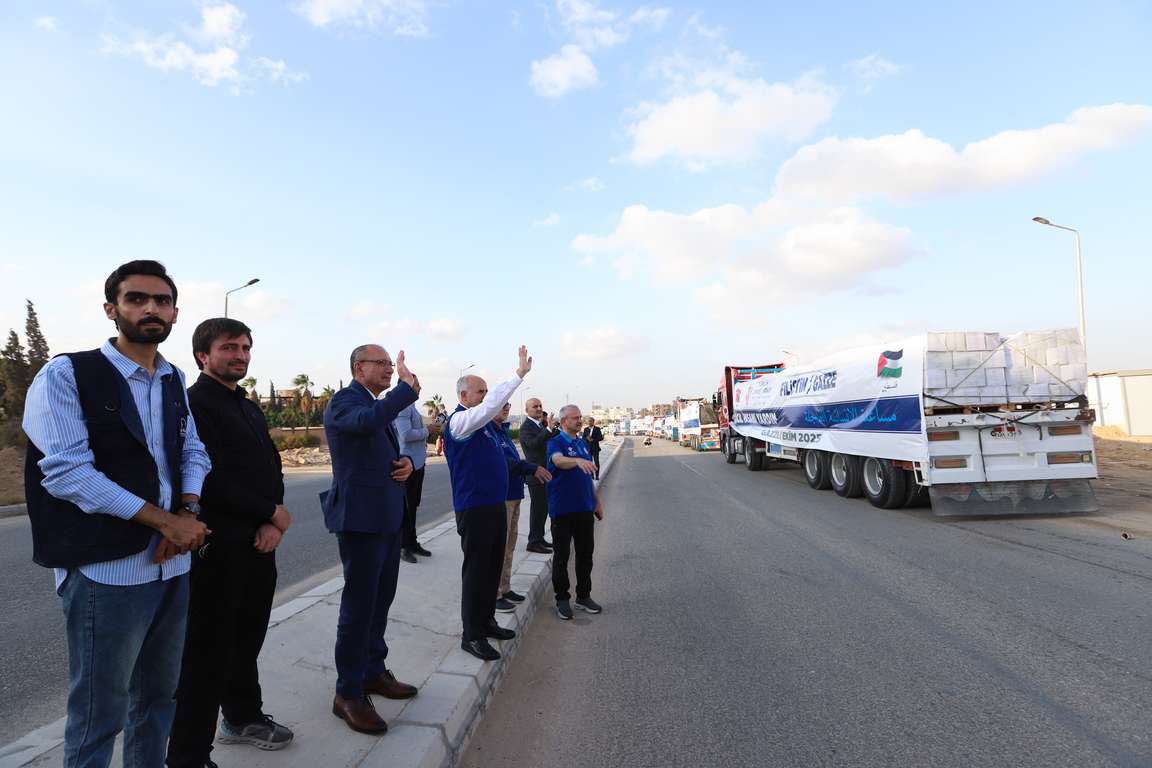 Hazırlar, Gazze Şeridi için yeniden ayağa kalkma dönemi olduğu bugünlerde Türk milletinin emaneti 20 tırdan oluşan insani yardımları göndermeye çalıştıklarını belirtti.