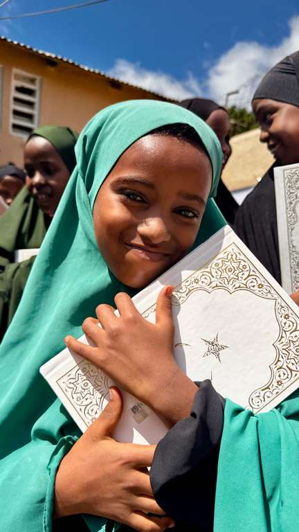 Hazırlanan Kur’an-ı Kerimler, Türkiye’nin Mogadişu Büyükelçiliği Din Hizmetleri Müşaviri Ömer Faruk Arslan, TDV Somali Temsilcisi Osman Türk ve gönüllüler tarafından, başkent Mogadişu’nun Warta Nabadda ve Hilwa bölgelerinde Hadis Medresesi, Er Rabia El Adeviyye Kız Medresesi ile İmam Şafi Yetimhanesi’nde eğitim gören öğrencilere dağıtıldı.